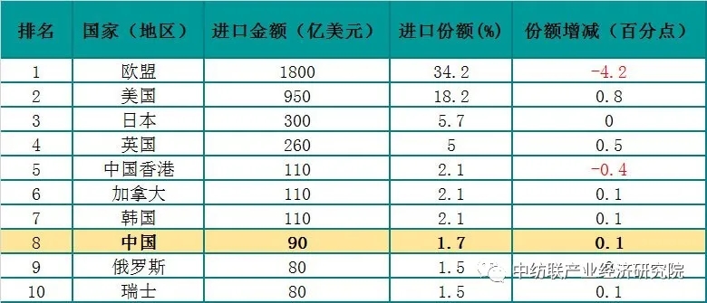 由于英国退出欧盟单独统计,且其纺织品服装进出口规模较大,故个别国家被英国替代未能进入榜单。英国是欧洲地区重要的消费市场,分别位列纺织品进口第7名、服装进口第4名;英国位列服装出口第8名。